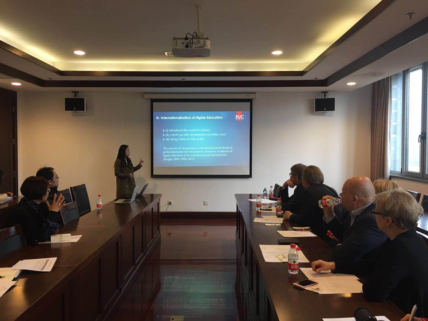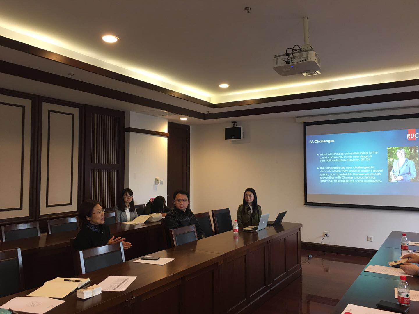 随后,青年教师代表高杭和谢梦分别就中国的基础教育和高等教育向代表团进行了介绍。高杭从宏观层面,梳理了中国教育发展的背景、中国当下的教育体制以及教育面临的问题和展望。谢梦则以高等教育为主要立足点,从高等教育体制、高等教育改革和高等教育国家化方面阐释中国当下高等教育领域面临的问题。
