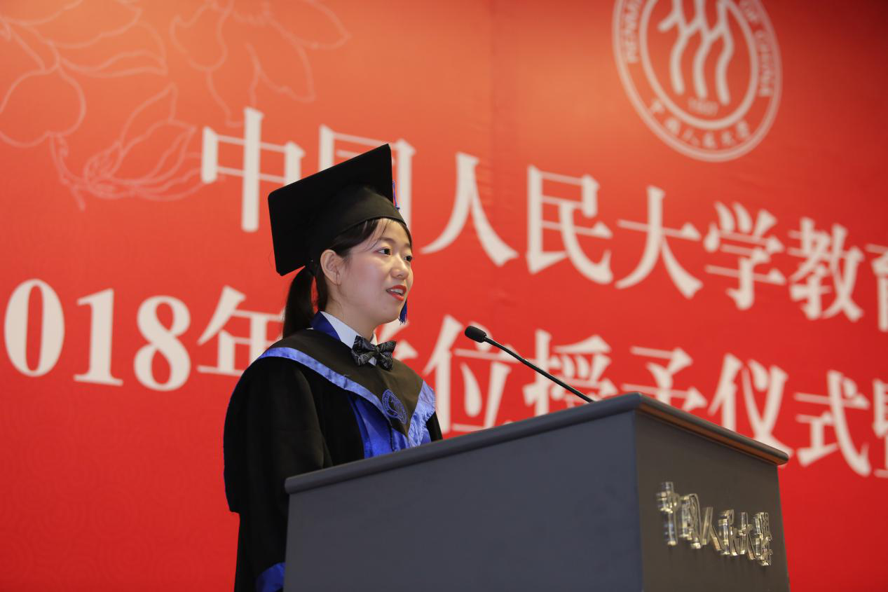 2016级硕士研究生李俊颖同学作为毕业生代表发言。李俊颖同学首先代表388vip太阳集团18届全体毕业生,向辛勤培育莘莘学子的母校、关心呵护每位同学的老师以及亲爱的父母和亲人表达感谢之情。她深情怀念了在388vip太阳集团学习的两年时光,回忆和老师同学相处的点点滴滴,表达即将离别的不舍。同时,也为敬爱的老师、亲爱的同学、珍爱的母校送上衷心的祝福。