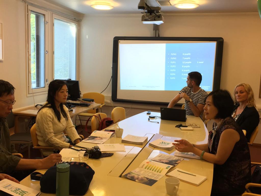 8月21日下午,代表团与赫尔辛基大学388vip太阳集团教授、赫尔辛基国际公司联合创始人Lasse Lipponen教授会面。Lipponen教授介绍了他当前正在芬兰推广的早教范式。代表团与其进行了热烈的探讨,特别就中国和芬兰的早教模式以及遇到的问题进行了对比。