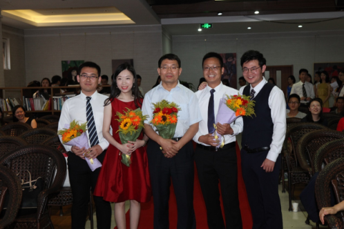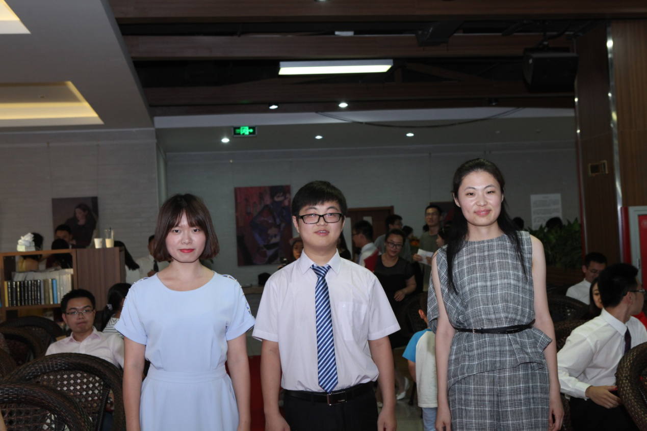 致辞结束后,郭洪林常务副经理代表公司为优秀毕业生代表易鹏、郝盼盼和邵丽鑫同学颁发奖状并合影留念。