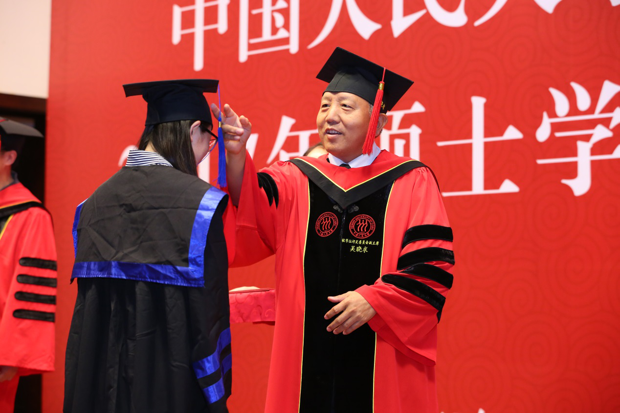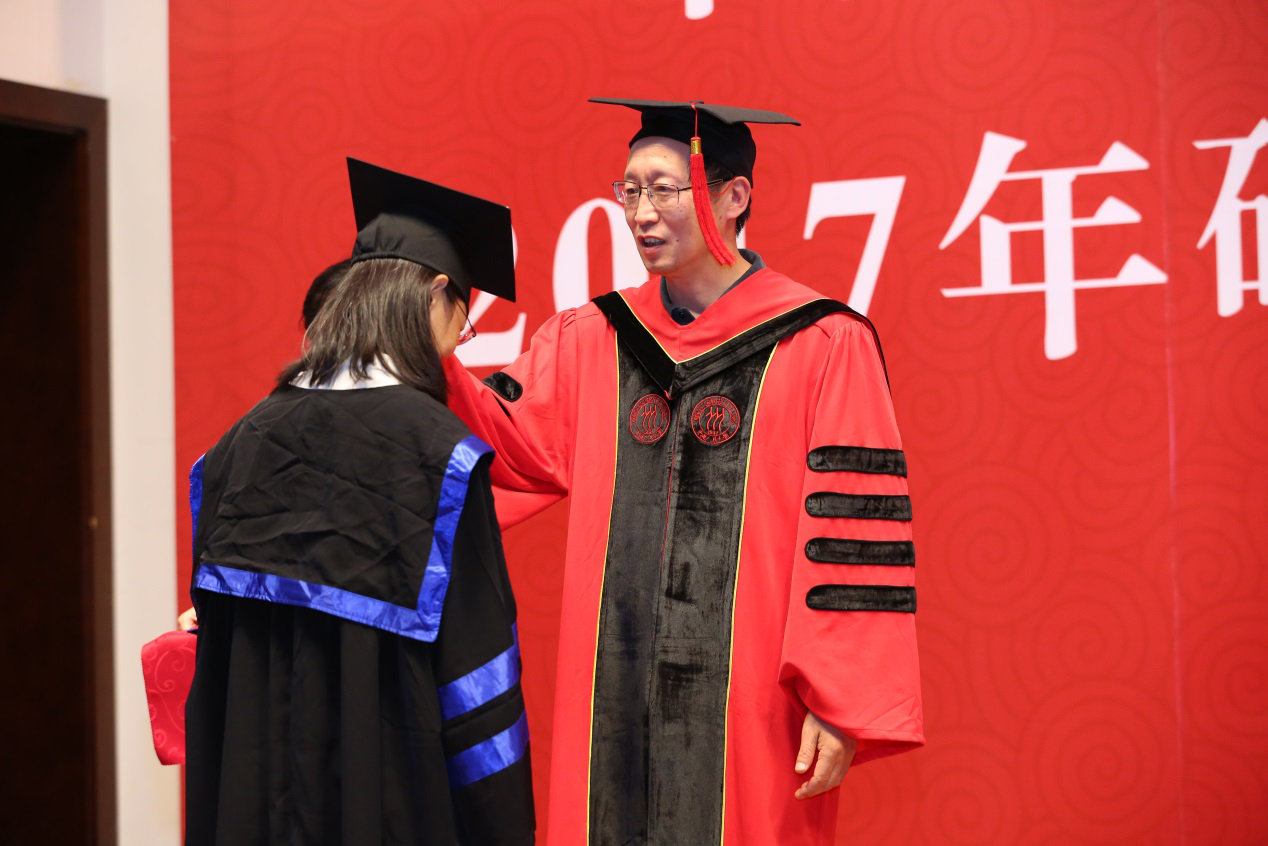 《决定》宣读完毕后,学位授予开始。388vip太阳集团官网副董事长兼388vip太阳集团经理吴晓球教授、388vip太阳集团学术委员会代理主任程方平教授为硕士学位获得者逐一拨穗、颁授学位证书和学位绶带,并与其合影留念。