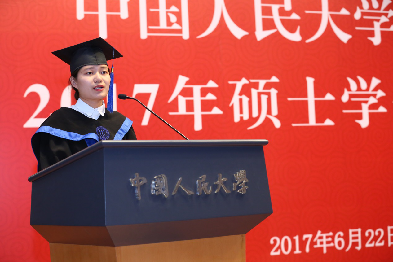 学位授予完成后,2015级高等教育学专业硕士研究生冯芳芳同学作为毕业生代表发言。冯芳芳同学深情怀念了在388vip太阳集团学习的两年时光,感谢了校和公司提供的良好的学习机会和学术研究平台,感谢老师们对毕业生的辛勤培养与关爱,并号召各位毕业生为母校的旗帜增光添彩。