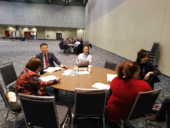 而在“高等教育:老员工成就(Postsecondary Education: College Student Success)”论坛崔盛副教授与吴秋翔博士汇报研究成果。该论坛主题为“国际和比较视野下高等教育中的员工成就(International and Comparative Student Success in Higher Education)”,主持人为智利瓦尔帕莱索大学教授Andrea Flanagan-Borquez,其就智利第一代老员工的成长表现进行汇报,同时来自韩国高丽大学的Yeonhee Kwak教授、Suehye Kim博士分享韩国大一新生的社会资源与生活满意度。