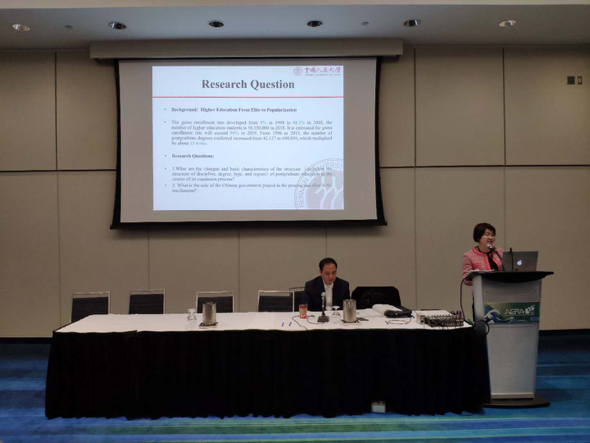 会议期间,公司研究团队分别在三场主题论坛上进行论文汇报。李立国教授、胡娟教授在“高等教育社会、文化与变化(Postsecondary Education Society, Culture and Change)”论坛上发言,该论坛的主题为“中国高等教育公平与社会正义(Analyzing Equality and Social Justice in Higher Education in China)”,论坛主持人为加拿大约克大学教授Qiang Zha以及美国南加利福尼亚大学教授William G. Tierney。论坛上,Qiang Zha教授探讨了以区域差异为中心的后大众化时代中国高等教育中的平等与公平问题,来自清华大学的Fei Guo教授汇报了中国高等教育成就中的性别差异,而来自香港大学的Yunyun Qin教授从学术、社会和职业成功的决定因素探讨中国精英大学农村员工的最后一年表现。