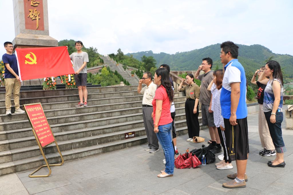 在青杠坡战役遗址纪念碑前,师生党员集体为革命烈士敬献花篮,在刘希明老师的带领下,师生党员在纪念碑前重温入党誓词,牢记总书记的嘱托。2018级硕士生公钦正在宣誓后表示:“在革命圣地庄严宣誓对我们是一次锤炼,让我们时刻记住我们这一代人的使命,为新时代建功立业!”