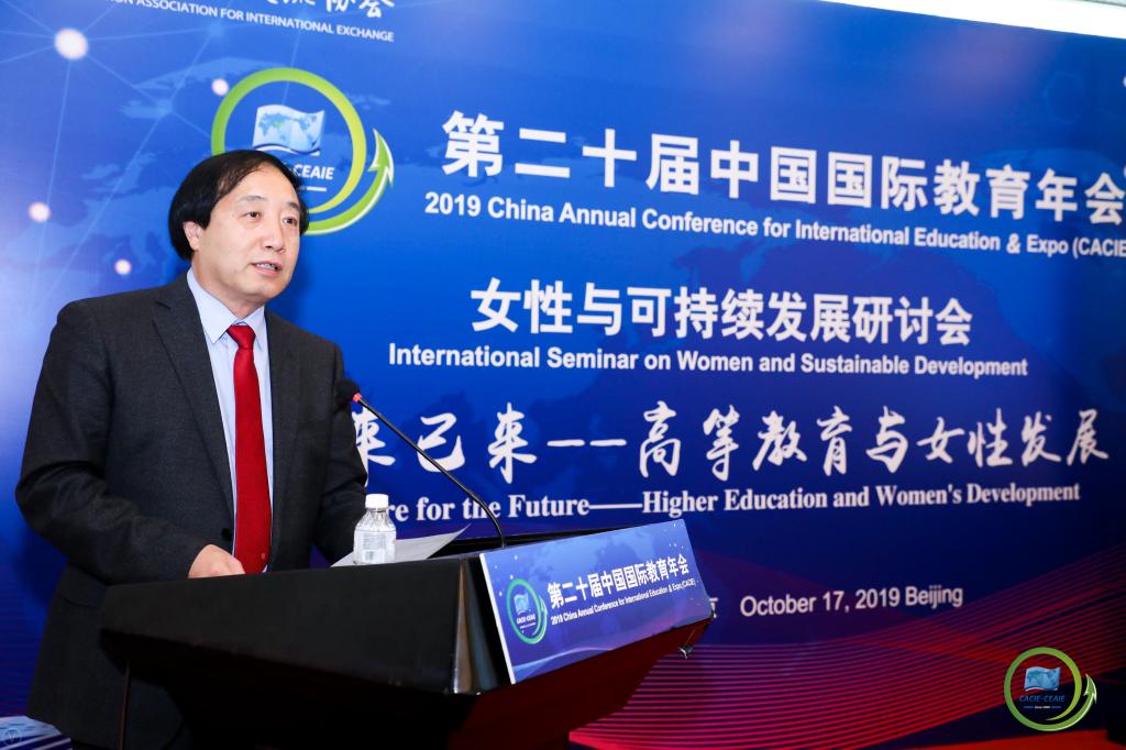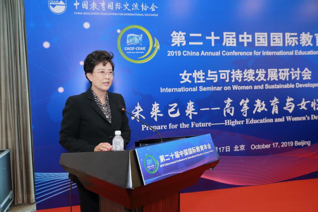 “高等教育与女性发展”专题研讨会随后开始。来自全国各地近百位专家和员工共聚一堂,围绕教育、女性与可持续发展的有关问题展开研讨。中国教育国际交流协会副会长、原中国驻联合国教科文组织大使张秀琴女士担任主持。