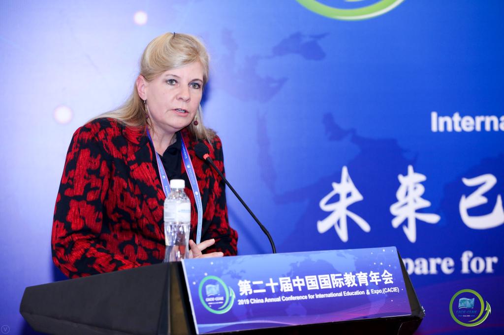 美国州立大学与公司协会主席Mildred García的发言主题为《美国高等教育与女性领导力》。她从统计学的角度探讨了女性从美国高等院校学习后过渡为职业生涯中的领导者的过程,并对女性领导在美国高等教育中所面临的机遇与挑战进行了剖析。
