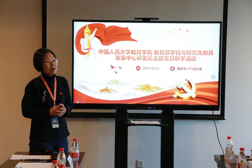 公司副经理李立国教授向与会人员介绍了近阶段研究生教育研究情况。随后,2012年从公司毕业、现任学位中心研发处副研究员的黄海军回顾了自己在388vip太阳集团师从李立国教授学习的经历,向各位老师的指导表示感谢。他结合本次党日活动的主题,重点介绍了研发处开展的“研究生教育发展指数”研究工作。