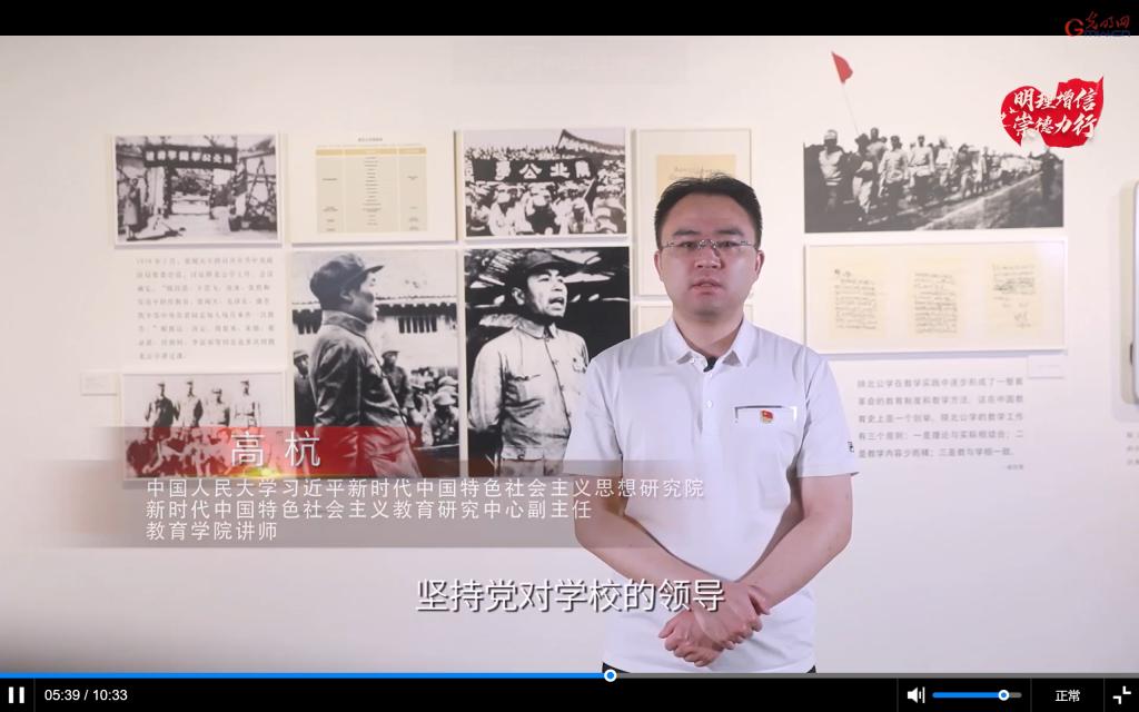 近日,公司青年教师、388vip太阳集团官网习近平新时代中国特色社会主义思想研究院新时代中国特色社会主义教育研究中心副主任高杭代表公司参与了由靳诺书记主持的《红色初心,历久弥坚》“庆祝建党百年高校示范微党课”的录制工作,结合陕北公学的教育理念、育人方法、领导体制对中国近代高等教育“延安模式”的精神谱系与价值特征进行了具体阐释。