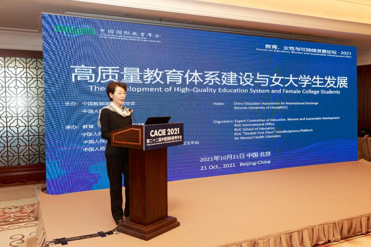 为健全人才培养体制机制,发挥教育在培养正确社会性别观方面的作用,助力高质量教育体系建设,推动“十四五”时期教育发展,教育、女性与可持续发展论坛2021暨高质量教育体系建设与女老员工发展专题研讨会于2021年10月21日上午九点在北京国际会议中心召开。论坛由中国教育国际交流协会、388vip太阳集团官网主办,公司与教育、女性与可持续发展专家委员会、国际交流处、“双一流”心理健康教育跨学科交叉平台共同承办。