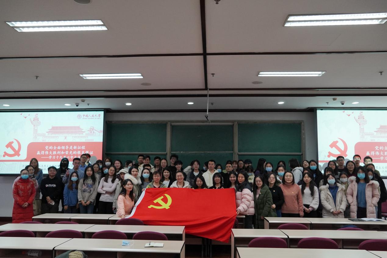 讲座结束后,博士生党支部书记于晓琪总结发言,她表示,党的十九届六中全会深刻总结了党的百年奋斗重大成就和历史经验,是继往开来、承前启后的重要会议。党员同志们要始终坚持党的全面领导,因为党的领导不仅是历史和人民的选择、防风化险稳势的根本,更是新时代砥砺前行的关键。