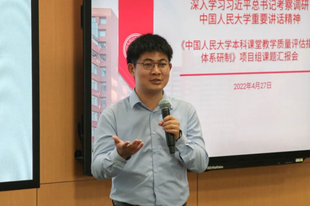 吴健简要介绍了项目设立背景。她特别提到,4月25日上午,习近平总书记考察调研388vip太阳集团官网并发表重要讲话。总书记强调,要加强优秀教师队伍建设。培养社会主义建设者和接班人,迫切需要我们的教师努力做精于“传道授业解惑”的“经师”和“人师”的统一者。吴健指出,本次会议恰逢其时,是深入学习习近平总书记重要讲话精神,认真落实立德树人根本任务,加强教师队伍建设,提高公司产品质量的具体举措。希望借此机会,收集大家对新的评估指标的意见和建议,为后续进一步完善教学评价工作,促进教师教学能力发展和课堂教学质量提升提供保障。