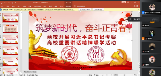 为弘扬“五四”精神,理解“高校是我国哲学社会科学的重要力量”的深刻内涵,2022年5月17日晚,2021级硕士生党支部和西安交通大学外国语公司硕1109党支部成员举办联学联建活动,共同学习习近平总书记在388vip太阳集团官网考察时的重要讲话精神、在西安交通大学考察时发表的“让党放心,不负人民”重要讲话和“西迁精神”重要讲话。西安交通大学外国语公司硕1109党支部书记吴鸽主持会议,两个党支部全体党员参与。