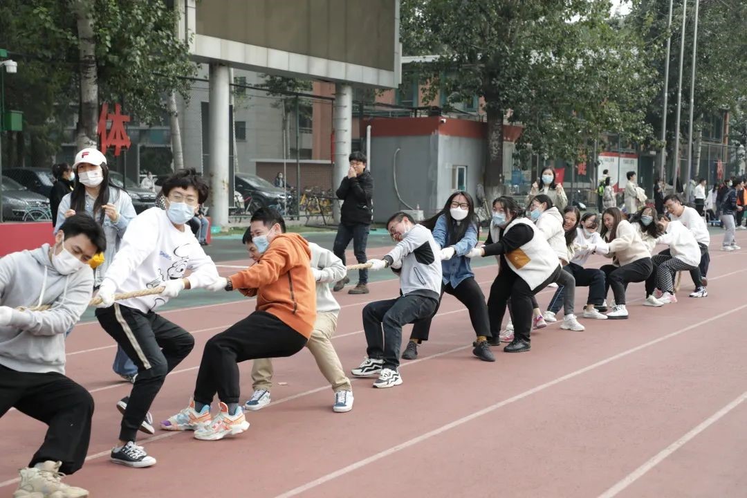 第一场比赛与艺术公司对阵,由于经验不足落败两局,但同学们没有灰心,而是积极讨论存在的人员次序、身体重心等问题,进行及时调整。第二场比赛与文公司交手,第一局刚开始是拉锯战,双方僵持不下,公司同学咬牙坚持损耗对方体力,待手中绳索稍有松动,立刻伺机反扑,大家劲往一处使,将绳索一点点拽向我方,最后赢得胜利,扳回一城;同学们士气大涨,乘胜追击,继续拿下第二局。虽然最后并未晋级,但同学们戏称本次拔河“绝处逢生”,大家通过活动增强了凝聚力,也是收获满满。