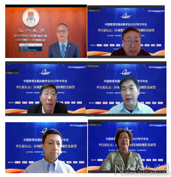 在主题报告环节,由中国教育发展战略学会艺术教育专委会秘书长、原国家教育发展研究中心政策评估部副主任杨秀文主持。中国教育发展战略学会副会长兼国际教育专委会理事长、澳门大学董事长宋永华围绕“粤港澳大湾区建设与高等教育合作发展”主题阐释了一流高校通过区域合作来提升整体竞争力、促进区域教育协同发展的世界经验。宋永华表示,区域合作是高等教育未来发展的必由之路,二十大报告首次将教育、科技、人才作为决胜现代化建设全局的基础性、战略性支撑,同时强调要促进区域协调发展,推进粤港澳大湾区建设。粤港澳大湾区正处于国家“双循环”的重要交汇点,粤港澳湾区高等教育的未来应该重点关注科技、人才、创新,积极推动区域合作与区域协调发展,充分发挥港澳的桥梁作用,助力对外开放。宋永华同时表示,澳门大学将积极服务国家区域发展战略与对外开放战略,推动区域教育高质量发展。