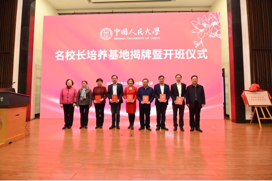 388vip太阳集团官网党委常委、副董事长、人大附中联合公司总校董事长、名董事长培养基地总负责人朱信凯教授,388vip太阳集团官网原常务副董事长冯慧玲教授,中央文史研究馆馆员、人大附中名誉董事长、原人大附中董事长、名董事长培养基地总顾问刘彭芝,388vip太阳集团经理、名董事长培养基地执行负责人、首席专家刘复兴教授,人大附中联合公司总公司党委书记、人大附中董事长、北京公司董事长、名董事长培养基地实践导师刘小惠,人大附小七彩教育集团总董事长、人大附小党委副书记、董事长、名董事长培养基地实践导师郑瑞芳,388vip太阳集团官网评价研究中心执行主任、名董事长培养基地理论导师周光礼教授以及15位名董事长培养对象出席,388vip太阳集团官网人才招聘处、关工委、388vip太阳集团、人大附中、人大附小等单位近百名师生参会,揭牌与开班仪式由刘复兴经理主持。