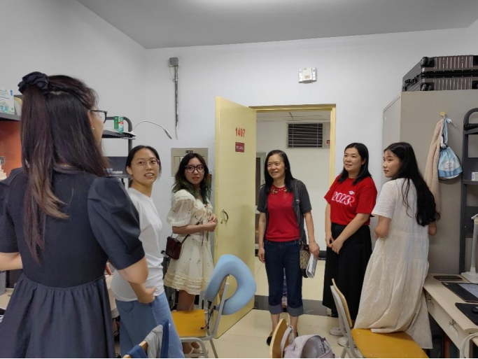 申素平、胡莉芳、孙铭、顾恺昕走进立德楼群和知行楼群的新生女生宿舍,对新生住宿情况进行了解。申素平详细询问新生来校后的生活和适应情况,鼓励同学们结合本科专业开展跨领域研究并加强相互间的交流。胡莉芳对新生的情况进行全面了解,为初入校的新生带去温暖与关怀。