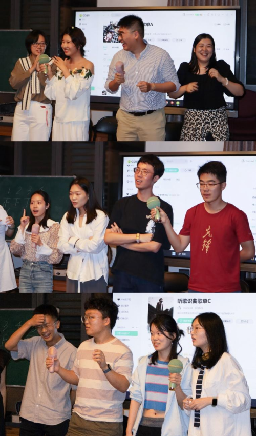吉他声落,联欢会迎来了第二个游戏环节——“听歌识曲”。一位位冠有“中华小曲库”之名的老师同学踊跃登台,不凡的猜歌实力引得现场欢呼连连,掀起了联欢会的又一个小高潮。
