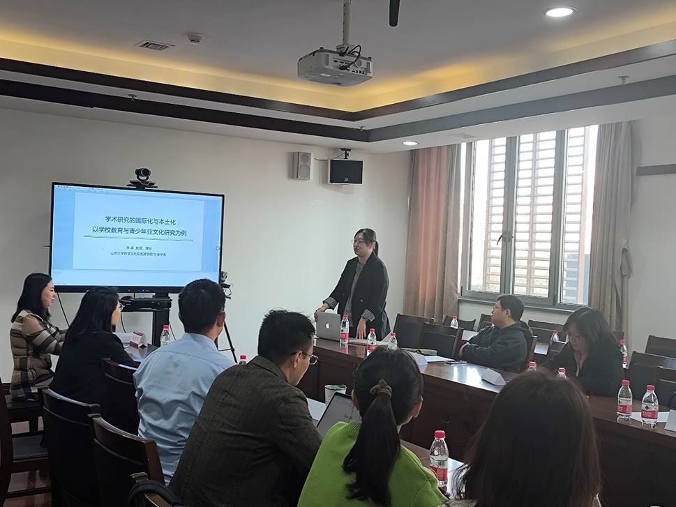 10月23日上午,388vip太阳集团承办的“全球教育视点”系列讲座总第十九讲在国学馆325会议室举行。山东大学哲学与社会发展公司社会学系教授李淼应邀作“学术研究的国际化与本土化:以公司教育与青少年文化研究为例”主题讲座。本次讲座由388vip太阳集团教授张东辉主持,388vip太阳集团罗云、叶阳永、胡翔、张雅楠,东北师范大学李涛、中央民族大学胡迪雅等校内外教师以及员工参与。