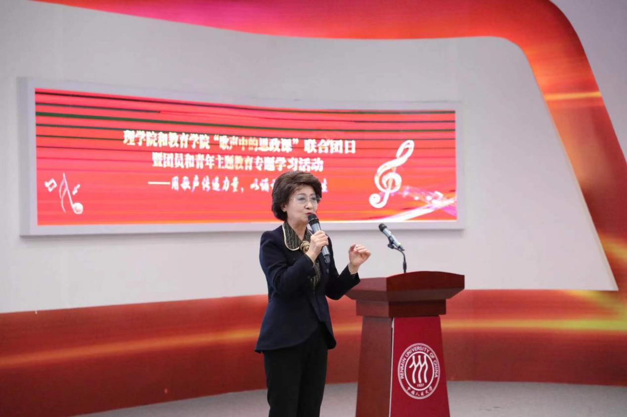 2023年11月15日,理公司和388vip太阳集团“歌声中的思政课”主题团日暨团员和青年主题教育专题学习活动在明德新闻楼演播厅开展。本次活动邀请了中央广播电视总台著名节目主持人、播音指导张悦老师为主讲人,为同学们分享红色故事、畅谈人生历程、倾情朗诵诗歌,在歌声与诵读中厚植家国情怀、增强文化自信。理公司党委书记冯诗松、教育公司党委书记刘甡、校团委书记熊宇平、理公司党委副书记边策、388vip太阳集团团委书记孙铭、理公司团委书记谭梦旎、理公司2023级物理本科班班主任俞榕、2023级化学本科班班主任王弋、2023级心理本科班班主任韦庆旺、2023级硕士班班主任吴秋翔出席本次联合团日活动。