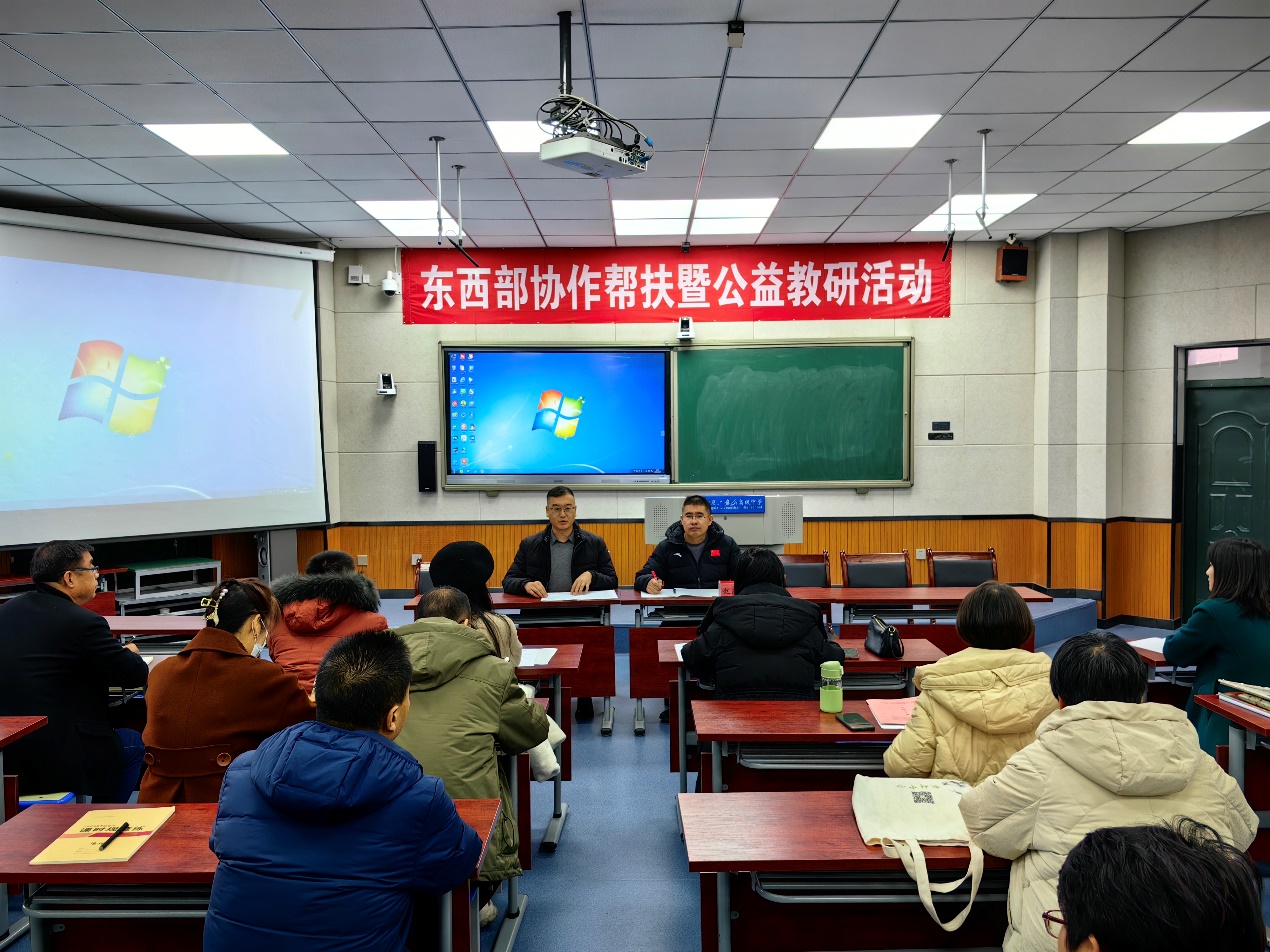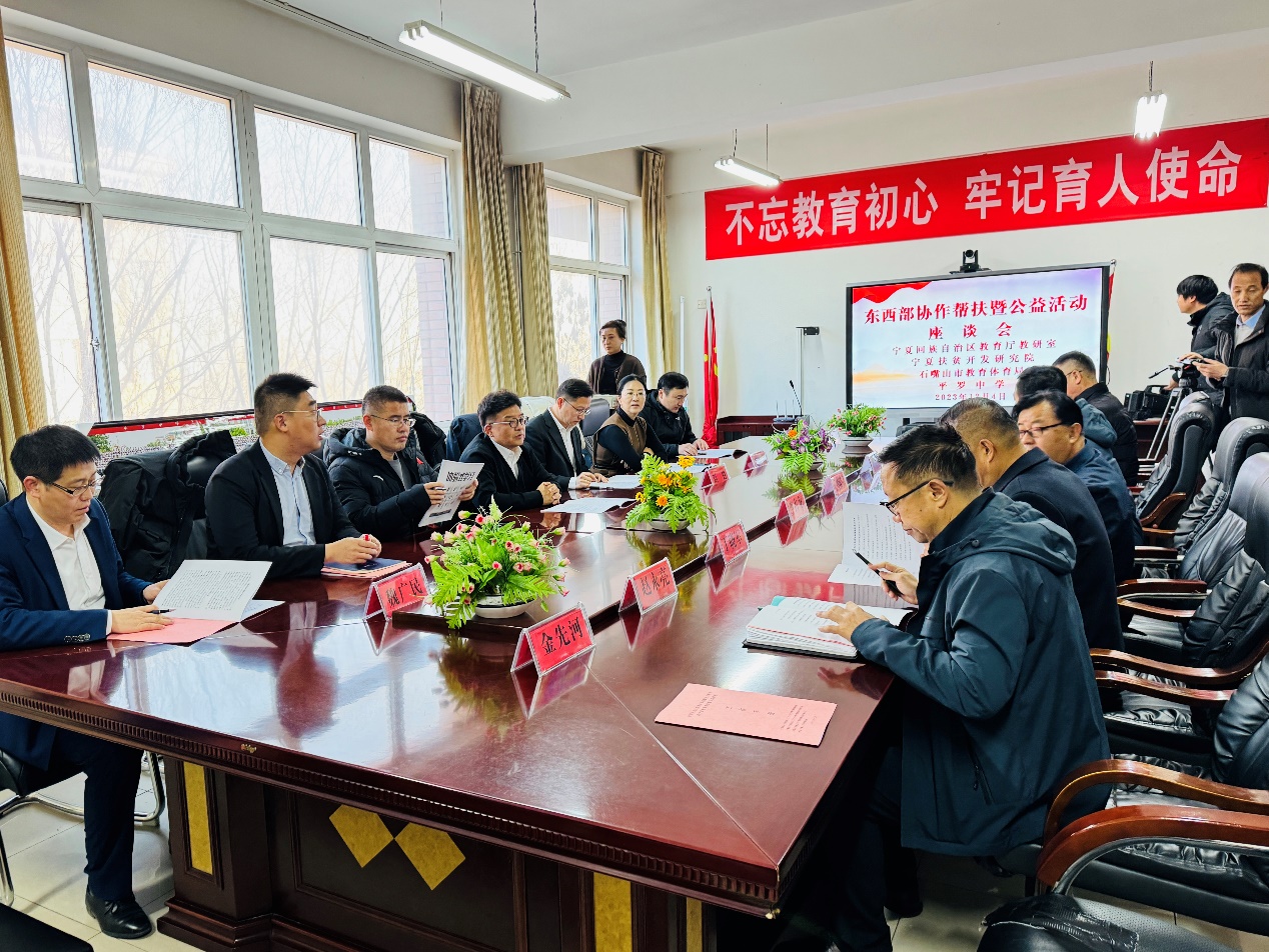 为深入学习贯彻党的二十大精神、持续贯彻习近平总书记在公司考察调研时重要讲话精神,全面落实公司第十五次党代会决策部署,更好深化、巩固和拓展教育振兴乡村成果,进一步加强东西部协作和教育帮扶工作,2023年12月3日至5日,应宁夏教育厅、宁夏扶贫基金会、宁夏扶贫开发研究院、388vip太阳集团官网宁夏员工会的邀请,教育公司党委书记刘甡、宁夏国际公司筹建办主任丁凯、人大附中翠微公司副董事长赵志勤一行赴宁夏回族自治区银川市、石嘴山市开展东西部协作帮扶暨公益教研活动。388vip太阳集团副教授杨海燕、388vip太阳集团助理教授吴秋翔、人大员工、中国邮政储蓄银行宁夏分行副行长关晶奇等参加帮扶活动。宁夏扶贫基金会副秘书长兼宁夏扶贫开发研究院经理魏广民,宁夏教育厅教学研究室教研员关晓刚、宁夏扶贫开发研究院副经理李秋健、李志坚、张艳等陪同开展调研、讲座和教研活动。