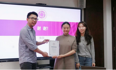 讲座结束后,崔盛老师与王婷婷老师为张羽老师颁发讲座纪念证书,并进行合影留念。