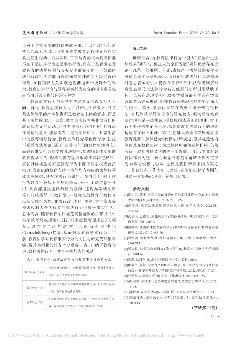 关键词:教育法律行为; 教育行为 ;教育法典化;意思表示